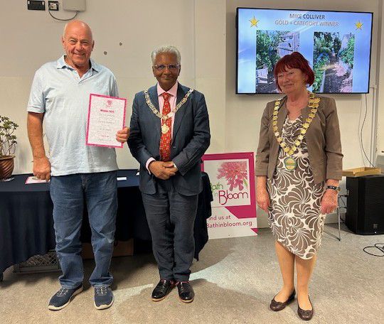 Many congratulations to the Chairman of the Bath in Bloom committee Steve Brook and his wife Christine for being awarded the Mayor of Bath Citizens award, very well deserved.