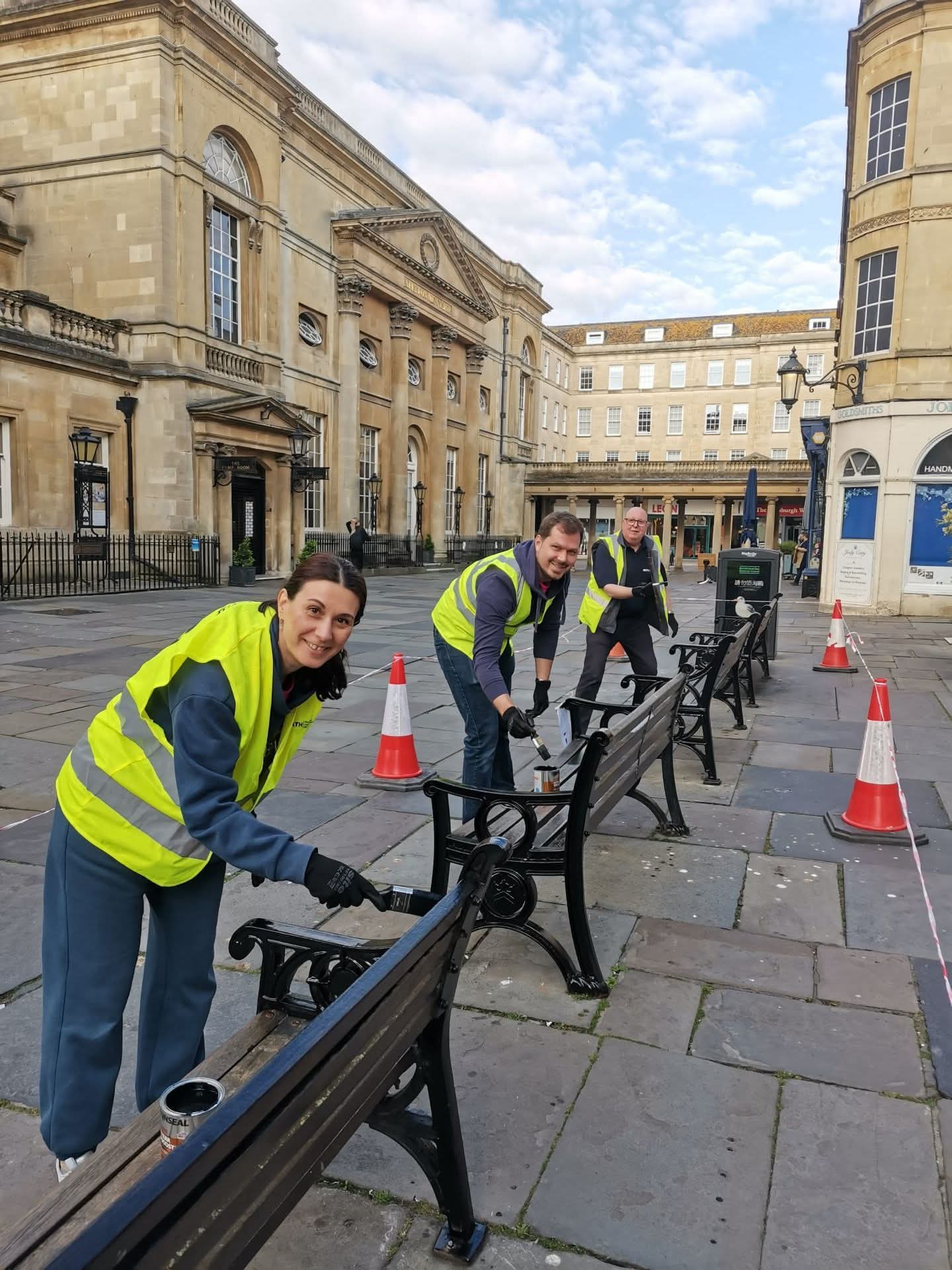 Bath in Bloom volunteers tidying up the Manvers Street raised beds April 2023