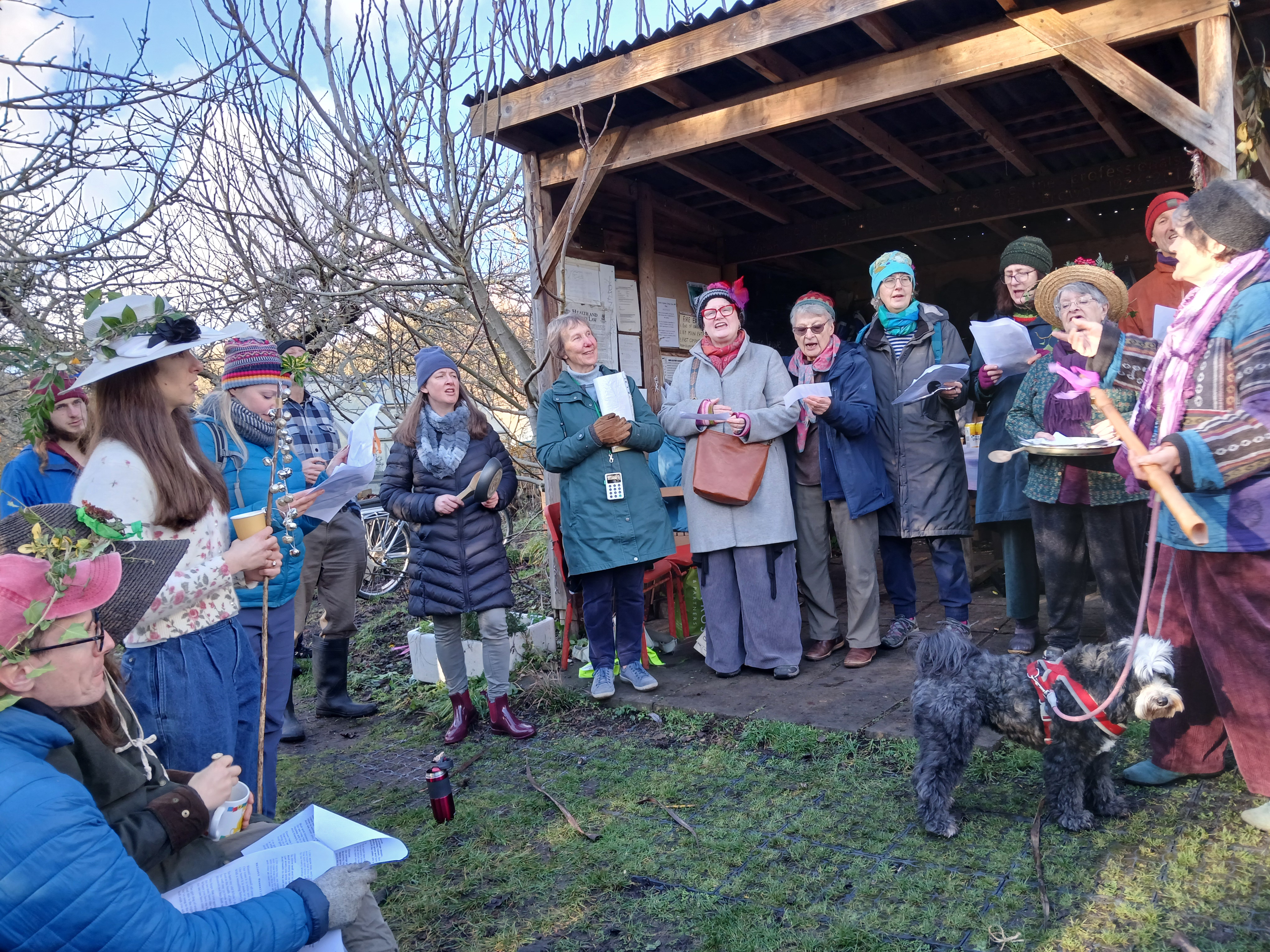 Great to see old traditions still being practised in the 21st century, Bath Organic Group "Wassailing" their orchard with singing and much banging of saucepans!!